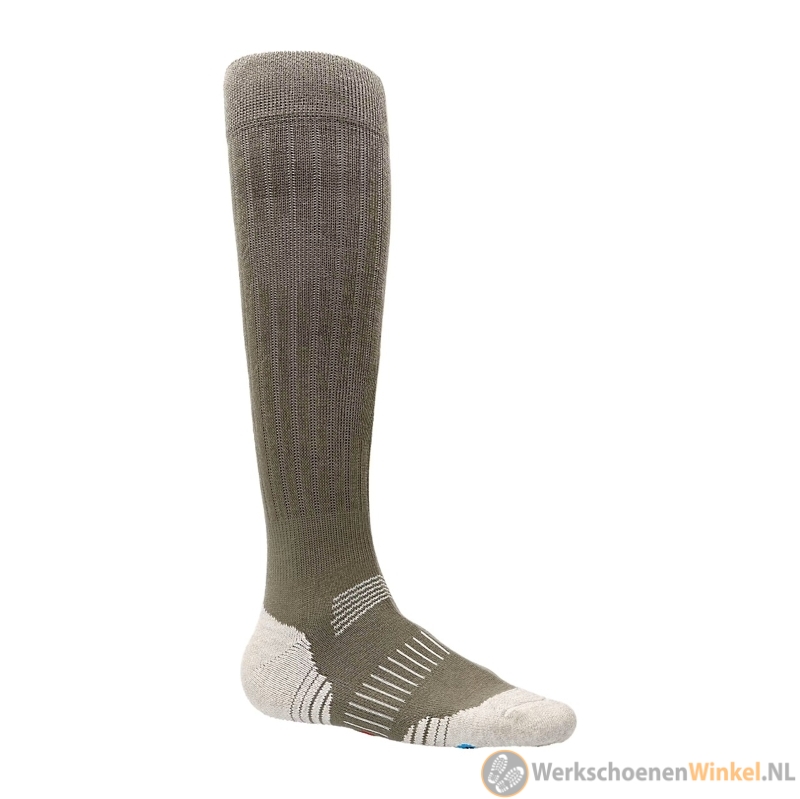 De sokken zijn gemaakt van vochtafvoerend materiaal en ademend, waardoor de voeten droog en fris blijven, zelfs tijdens lange werkdagen. De elastische pasvorm en zachte materialen zorgen voor extra ondersteuning en comfort, terwijl de versterkte zones bij hiel en tenen de sokken slijtvast en duurzaam maken.