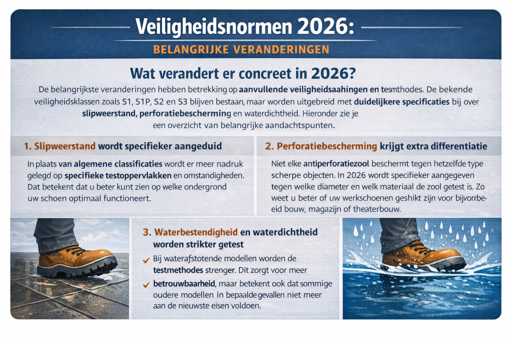 In deze blog lees je wat er verandert, wat dit betekent voor jouw werkschoenen en waar je in 2026 extra op moet letten bij het kiezen van het juiste model.