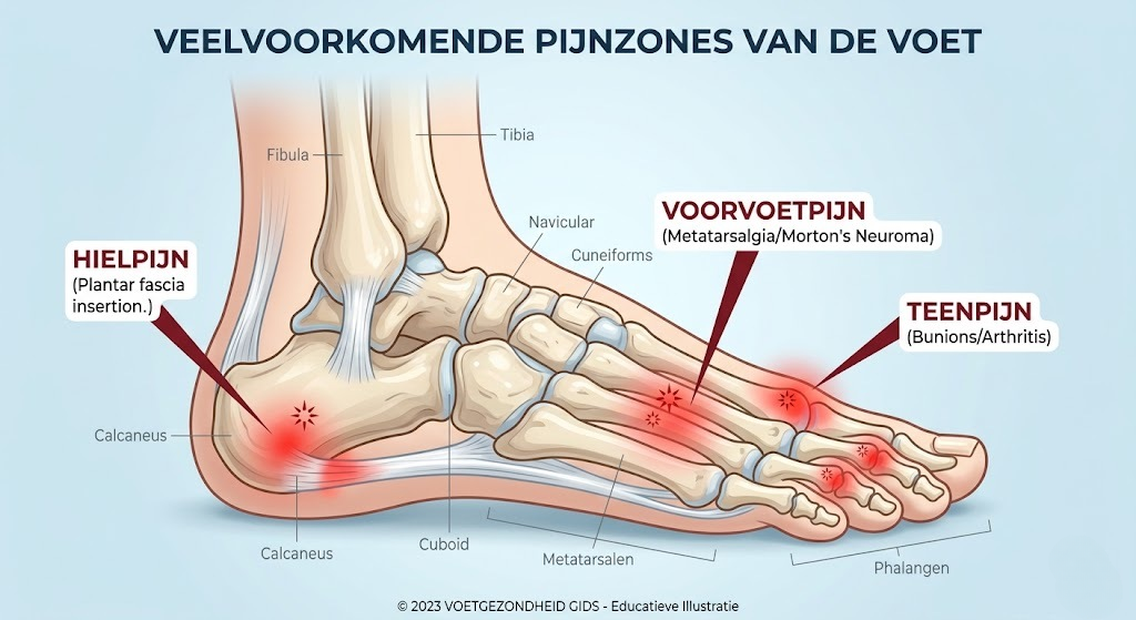 De meest voorkomende klachten zijn hielpijn, vermoeide voeten, pijn onder de voorvoet, blaren en drukplekken.
