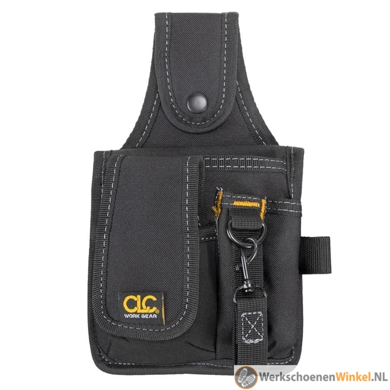 Deze houder is voorzien van vier praktische vakken, een lus voor een mini-zaklamp, een riempje voor elektrische tape en zelfs een ingebouwde mobiele telefoonhouder. Zo heb je altijd alles bij de hand – van klein handgereedschap tot je tape en telefoon. De elektrische tapelus zorgt ervoor dat je tape snel en eenvoudig bereikbaar is tijdens het werk.