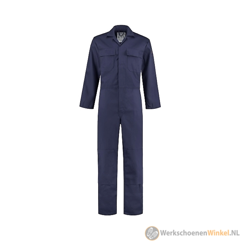 De marineblauwe kleur geeft de overall een professionele uitstraling en hij is verkrijgbaar in de maten 44 tot 64