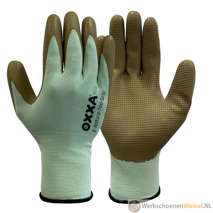 De Oxxa E-nature Top Grip 52-050 werkhandschoenen bieden optimale grip en bescherming. De Aerated Natural Rubberlatex coating op de handpalm en vingers met het suction cups patroon zorgt voor een extra stevige grip op zowel een droge als een natte ondergrond.