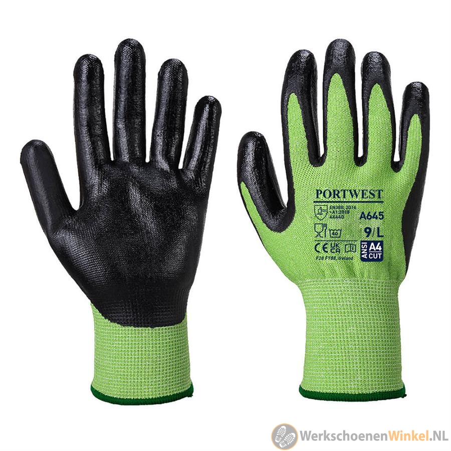 Portwest A645 Snijbestendige handschoen nitril groen/zwart
