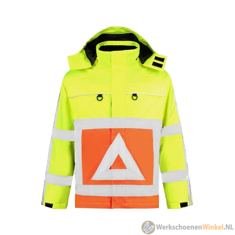 De Voordelige Parka Verkeersregelaar fluorgeel/oranje biedt optimale zichtbaarheid, bescherming en comfort tijdens verkeerswerkzaamheden. Uitgevoerd in fluorescerend geel/oranje met RWS-reflectiestrepen voldoet deze jas aan de RWS-richtlijnen EN ISO 20471:2013 klasse 3 en EN ISO 343 klasse 3:1.