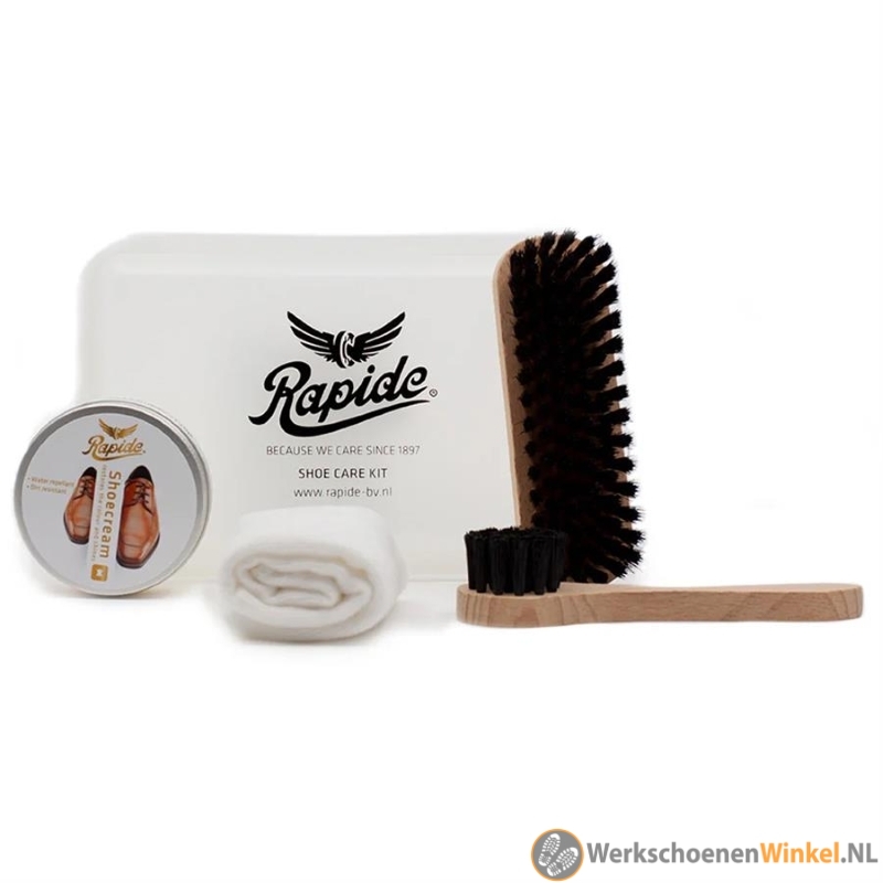 Uw lederen schoenen onderhouden is natuurlijk heel erg belangrijk, en deze schoenenpoetsset van Rapide maakt het nog makkelijker! Deze super handige schoenonderhoud-box heeft een click systeem zodat hij makkelijk mee te nemen is voor onderweg. De box bevat een lederwas neutraal 50ml, in- en uitpoetsborstel en een glansdoekje. De lederwas zorgt ervoor dat uw lederen schoenen niet uitdrogen en soepel blijven, zodat u nog langer pret heeft van uw schoenen.
